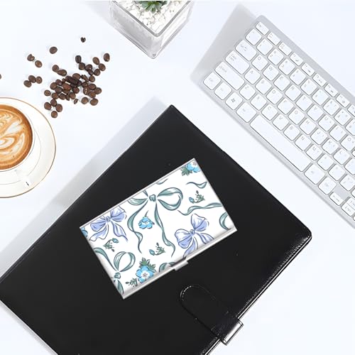 Business Card Holder, Stainless Steel Card Case, Metal Men's and Women's Business Card Case, Cute Buckle Style Card Holder, Wallet Credit ID Case for Office Blue Bows 4