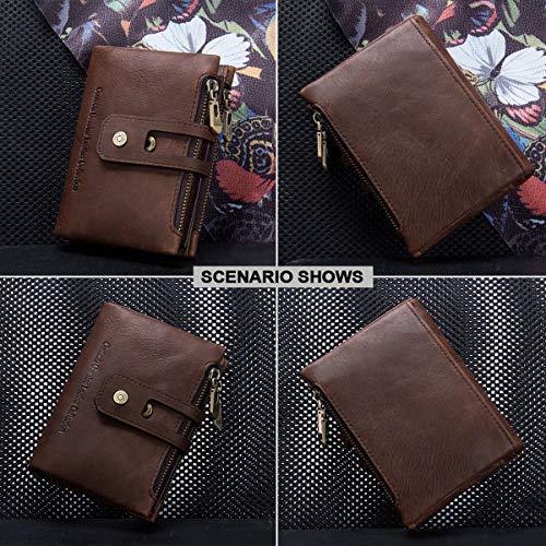 Wallet for Men- Men Leather Wallet,Trifold Wallet RFID Blocking Zipper Pocket Coin Credit Card Holder Purse With ID Window 5