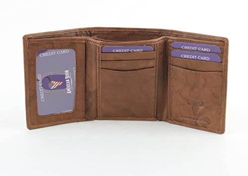 HOT ! American Bison Trifold Classic Wallet for Men – RFID Blocking Cowhide Leather Wallet (Tan)