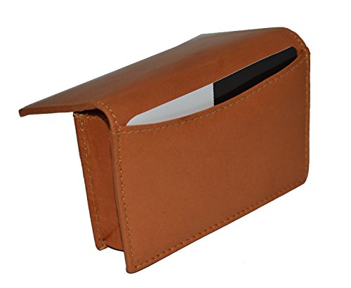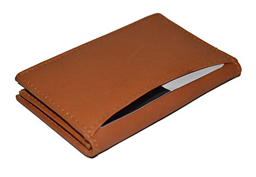 HOT ! Leatherboss Small Credit Card Holder Wallet with Expandable Pocket - Tan 4" X 2.3/4"