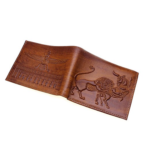 HOT ! Genuine Leather Farvahar Winged Lion Men Wallet Iranian Persian Art