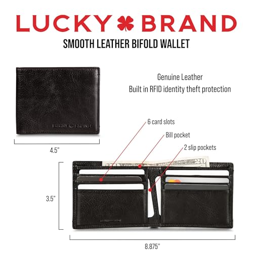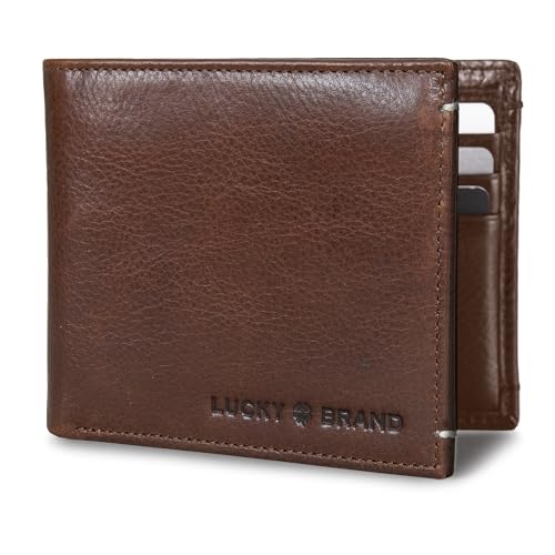 HOT ! Lucky Brand Men's Bifold Wallet | ID Window | Card Slots Organization | Durable | Stylish, Smooth Leather-Brown, One Size
