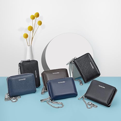 HOT ! VANNANBA Chain Wallet Zipper Large Capacity Organizer Accordion Wallet Genuine Leather Purse RFID Blocking Wallet for Men,black10