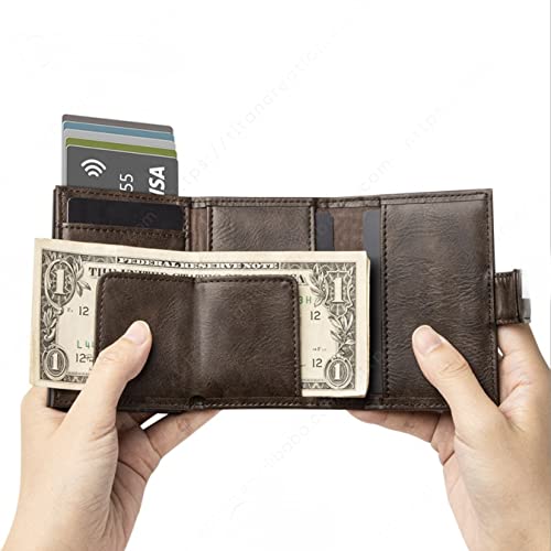 HOT ! Smart Leather Wallet for Men, Aluminium Credit, Smart, Debit Card Holder for RFID Blocking, HASP, Quick Card Access, Pop Out Open Wallet, Multifunctional (Coffee)