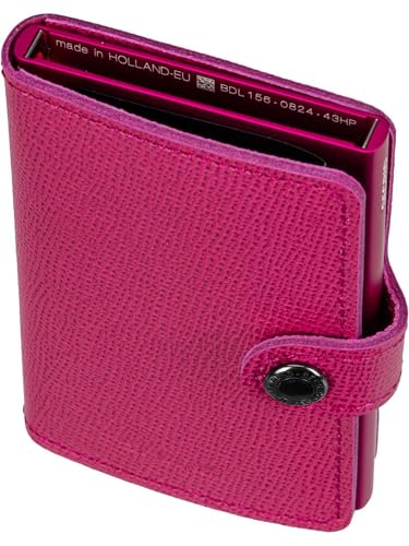 HOT ! SECRID Miniwallet Crisple Fuchsia Leather Wallet - RFID Protected, Unisex, Minimalist Style, High Denier, 3 Compartments, 10 Card Slots, 72g, 102x21mm, For Adults