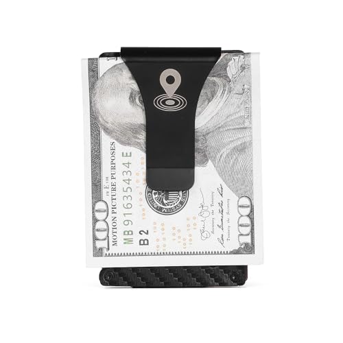 HOT ! Trackable Thin Card Wallet For Men - Leather Bluetooth Anti-Lost Credit Card Holder with Metal Money Clip Men's Card Holder Minimalist Smart Men's Wallet (Carbon Black)