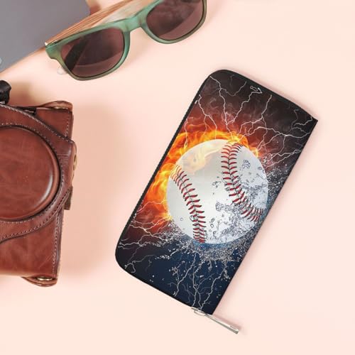 Wallet for Men PU Leather Credit Card Wallet, Cool Cash Clutch Long Purse Billfold with Zipper Coin Pocket Gift for Him Husband and Boyfriend Water Fire Baseball 018 1
