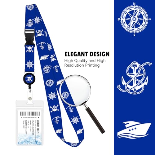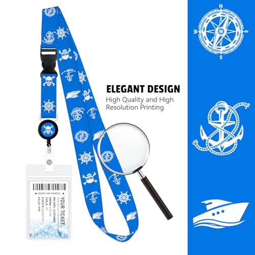 2 Pack Retractable Cruise Lanyard with Waterproof ID Holder Retractable Reel for Cruise Key Cards Ships Essentials & Must Have Travel Accessories(Funny Pirate) 2 7