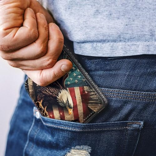 HUIACONG American Flag Eagle Leather Mens Wallets Tie Dye Thin Slim Credit Cards Ponch,Bifold Smart Clutch Wallet Purse Coin Pocket Travel Cash Organizer Storage 6