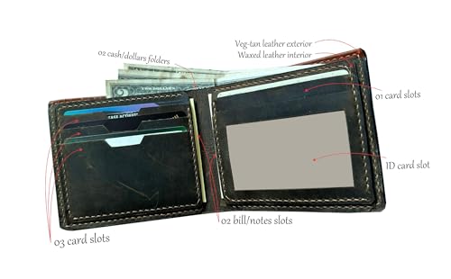 • MINIMALIST STRUCTURE : The leather handmade mens wallet have 06 card slot, 02 big folders for cash, 02 medium foldes for bill/note. It's minimalist wallet, slim and thin, fit the front pocket but it's enough space for your daily using.