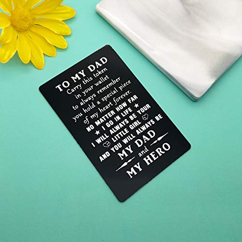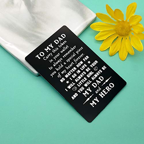 • Metal Wallet Insert Card Gift:To My Dad, Carry this token in your wallet to always remember you hold a special piece of my heart forever. No matter how far I go in life, and you will always be my dad and hero Card,It’s a special way to remind how much I love my father. It is a thoughtful sentiment that he can take with him everywhere .