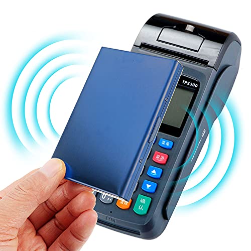 HOT ! Metal Wallet – Stainless Steel RFID Blocking Credit Card Holder for 6 Cards, Slim Business Card Organizer (Blue)