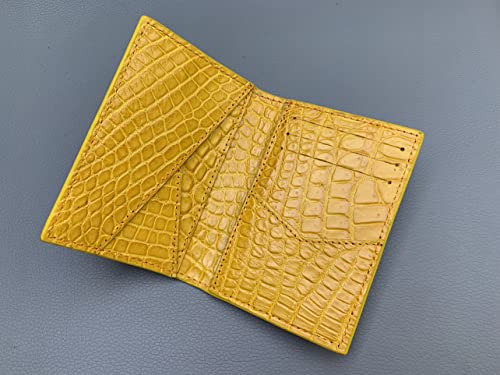 Yellow Genuine Alligators Crocodile Double Side Leather Credit Card Holder 5