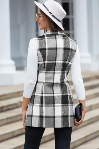 IDEALSANXUN Plaid Vest for Women Fall Winter Sleeveless Blazer Jackets 4
