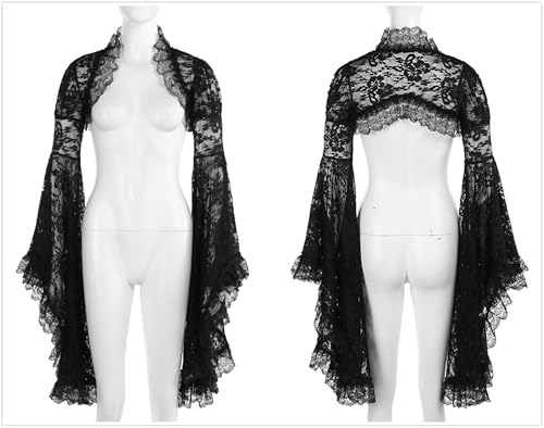 • Construction: This gothic lace flared sleeve bolero shrug crop tops is designed to maintaining its shape and elegance. Ideal for layering over festival outfit