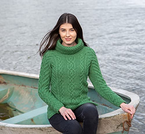 HOT ! SAOL Aran Irish Sweater for Women - Made of 100% Merino Wool - Ireland Fisherman Cable Knit Ladies Pullover