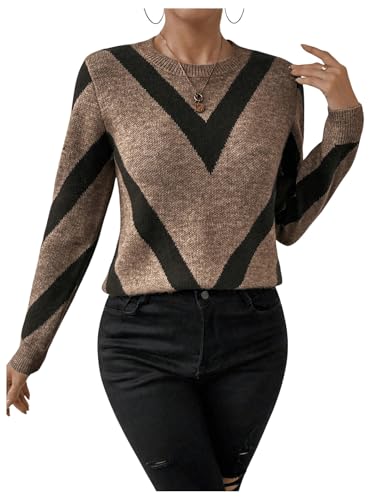 HOT ! SweatyRocks Women's Chevron Print Long Sleeve Knitted Crewneck Sweater Casual Pullover Top