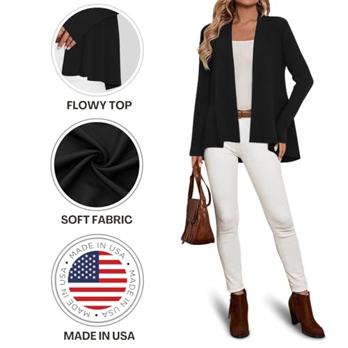 Sweet Hearts Long Sleeve Black Cardigan for Women- Lightweight Open Front Knit Sweaters Women’s Kimonos Fall Duster 3