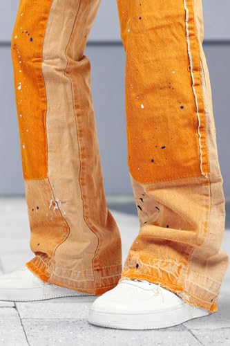 More information about GINGTTO Mens Flared Jeans Stretch Elastic Waist Carpenter Denim Pants for Men Contrast Painted Design Yellowish Brown 34