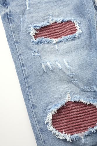 More information about Men's Trendy Small Leg Ripped Jeans with Stretchy Slim Fit Distressed Casual Light Blue Jeans