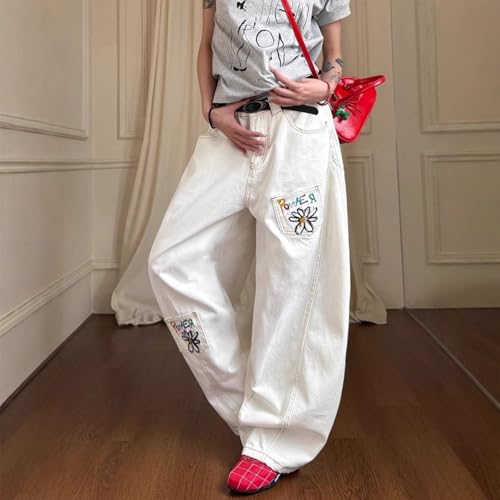 More information about Baggy Jeans Men Vintage HIgh Waisted Barrel Jeans Men Flower Streetwear for Skater Parachute Wide Leg Denim Pants