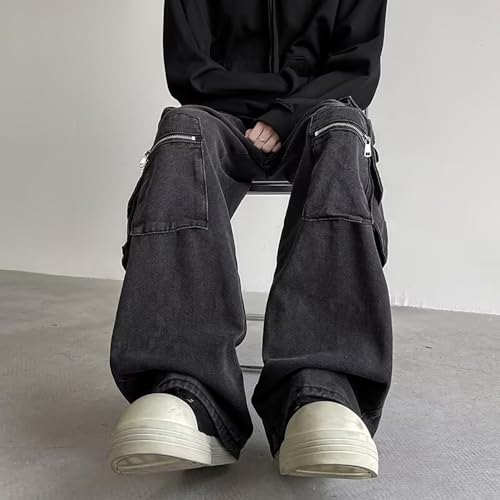 More information about Men's Multi-Pocket Cargo Jeans Baggy Straight-Leg Distressed Black Pants Y2k Hip-hop Harajuku Streetwear