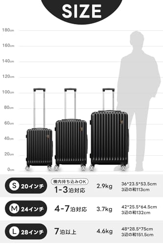 HOT ! Unisex's Quiet Double Caster with Stopper for Travel, Black, Lサイズ /7泊~長期旅行