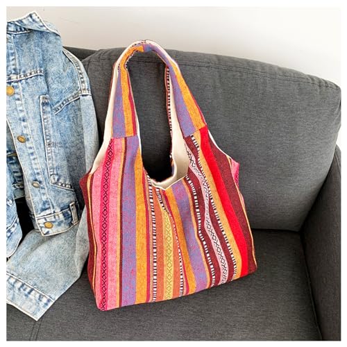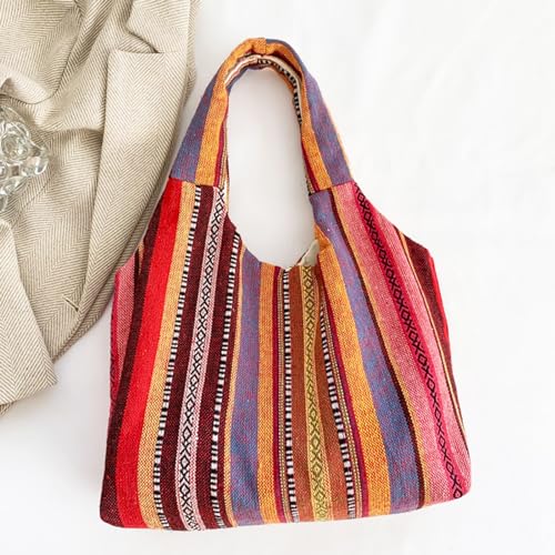 HOT ! Bohemia Tote Bag, Canvas Shoulder Bag for Women, Large Capacity Work Bag,Reusable Canvas Lunch Bag Teacher Bag Shopping, Utility Aesthetic Handbag(Red)