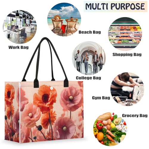 HOT ! Pink Red Flowers Tote Bag for Women Large Beach Bag Reusable Tote Bags for Work Travel Beach Shopping