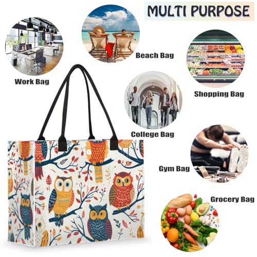 HOT ! Cartoon Owl Branch Tote Bag for Women Large Beach Bag Reusable Tote Bags for Work Travel Beach Shopping