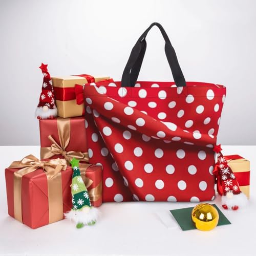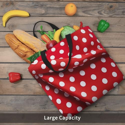 • Polyester Construction: Crafted from durable, lightweight polyester, thisRed White Polka Dot print tote is machine washable. Reinforced stitching ensures long-term use, while its foldable design makes storage effortless - fit for eco-conscious shoppers