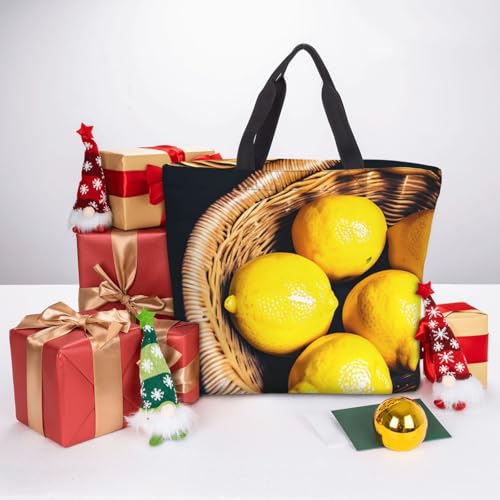 HOT ! Basket Lemons Print Women's Portable Tote Bag - Large Shopper for Beach,Travel,Gym | Summer Handbag