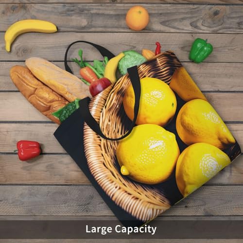Basket Lemons Print Women's Portable Tote Bag - Large Shopper for Beach,Travel,Gym | Summer Handbag 2