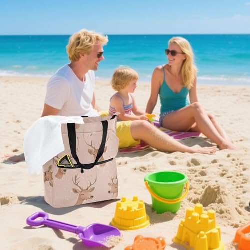 HOT ! Decorative Kids Tote Bags for Kids Boys Girls, Rose Gold Christmas Deer Sturdy Library Book Tote Bag Shoulder Bag with Pockets for School Shopping Travel Rainbow bolsos para guardar