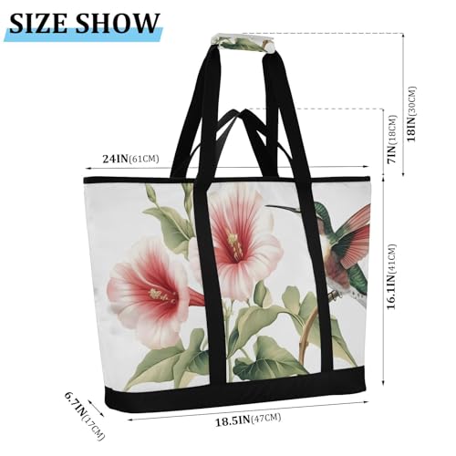 HOT ! Flower Hummingbird Leaf Large Insulated Tote Bag for Grocery Shopping Reusable Tote Bags for Women Men, Cooler Bag with Zippered Top & Handles for Beach Picnic Travel