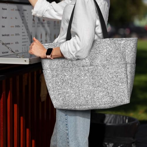 HOT ! Silver Glitter Large Capacity Beach Travel Bag – Lightweight Foldable Waterproof & Sandproof Tote With Multiple Pockets,Beach Vacation Essentials