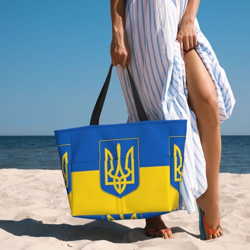 HOT ! Ukrainian Flag Women Large Beach Bag Travel Weekender Foldable Tote Bag for Pool Beach Vacation Gym