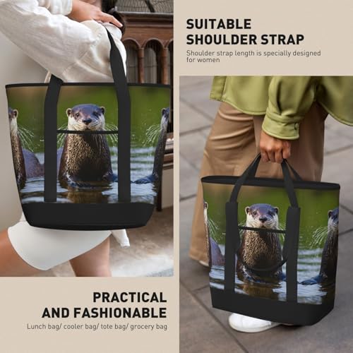 HOT ! Animal Cute Brown Otters Print Tote Bag Adult Heavy Duty For Picnic Beach Camping Large Capacity Insulated Tote Bag