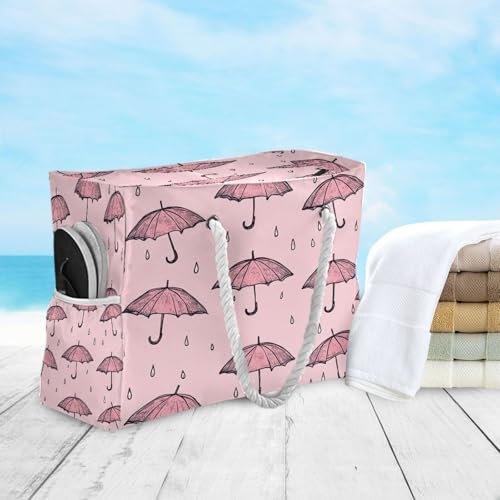 Umbrellas Beach Bag with Top Zipper Closure, Waterproof Pool Bag, Large Beach Tote for Women#100 1