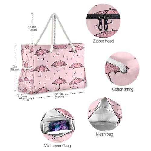 Umbrellas Beach Bag with Top Zipper Closure, Waterproof Pool Bag, Large Beach Tote for Women#100 5