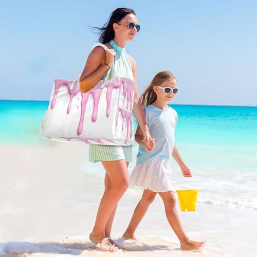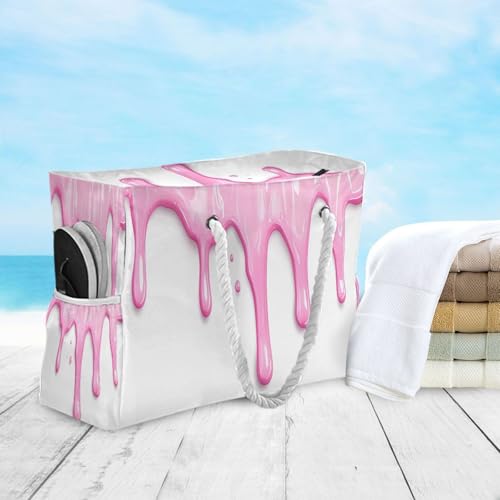 ATTX Pink Dripping Beach Bags for Women - Large Beach Bags with Zipper Waterproof Sandproof Swim Pool Bag Large Tote#342 1