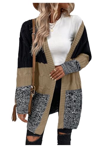 HOT ! MakeMeChic Women's Color Block Cable Knit Open Front Sweater Cardigan Long Sleeve Outerwear