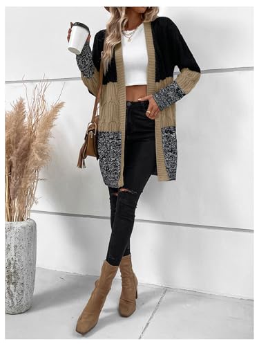MakeMeChic Women's Color Block Cable Knit Open Front Sweater Cardigan Long Sleeve Outerwear 6