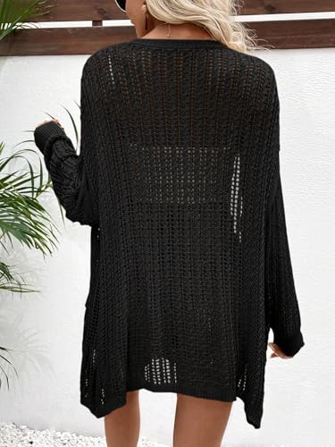 • Features: Knit cardigan for women, lightweight cardigan for women, lightweight summer cardigan, open front, two pockets, long sleeve, crochet knit, solid color, knit crochet cardigan for women