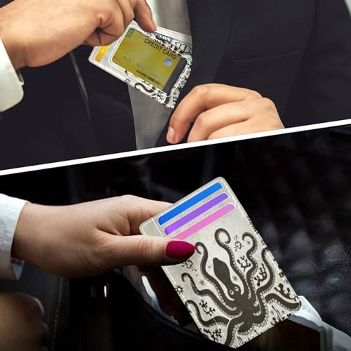 Front Pocket Minimalist Leather Slim Wallet Credit Card Holder Black Octopus for Men & Women 5