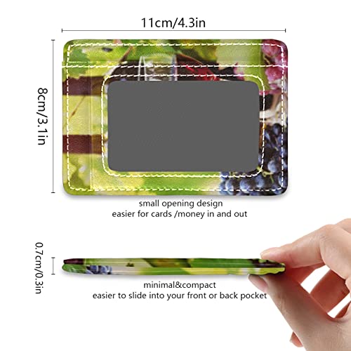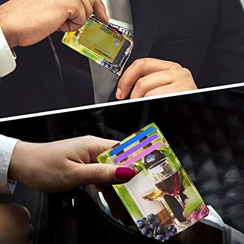Red Wine Glasses Bottles Grapes with Green Leaves and Wooden Barrels Slim Minimalist Wallet, Front Pocket RFID Leather Blocking Card Holder Case for Men Women Girls Ladies, Stylish Printing Gift 5