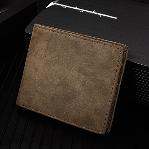 • 🎄🎁Genuine Leather : The wallet made from high quality genuine leather, the leather gives a premium look while making it durable. Matte surface treatment, fashion brown color, has the effect of vintage and will not lose its appearance over time.