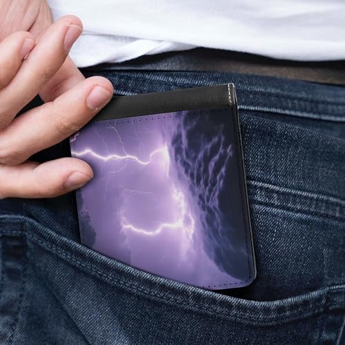 Pu Leather Bifold Wallet for Men Waterproof Credit Card Holder Purse with Card Slots Purple Lightnings Art Wallet for Office Travel 7