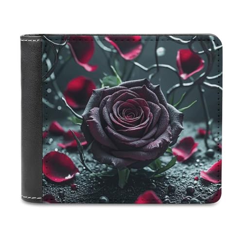 HOT ! Rose Leather Bifold Wallet with 2 Hidden Pockets 6 Card Slots Slim Wallets for Cash, Cards, And ID