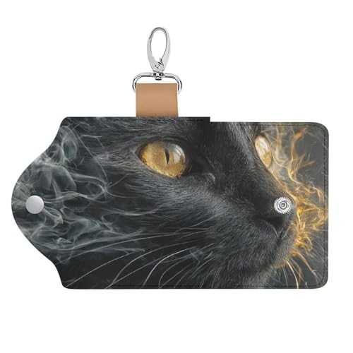 Black Cat with Golden Eyes Key Holder Bag PU Leather ID Card Holder Keychains Case Cover for Men Women 6